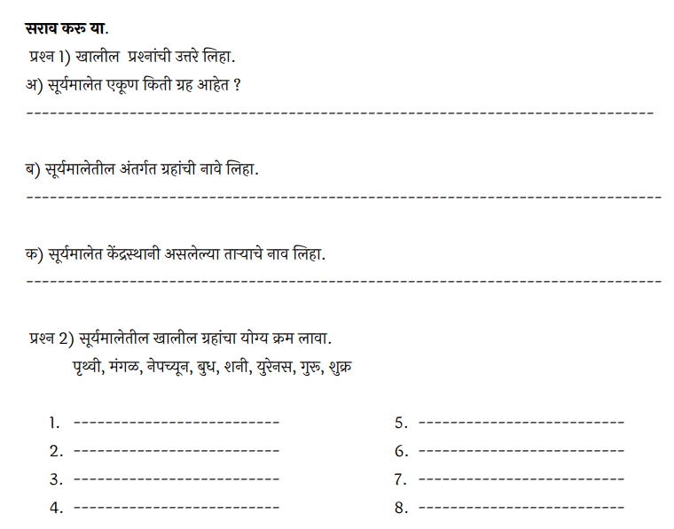 समजून घेऊया: सूर्यमाला, सूर्यमालेतील ग्रह संदर्भ: इयत्ता सहावी, प्रकरण 16 विश्वाचे अंतरंग अध्ययन निष्पत्ती :