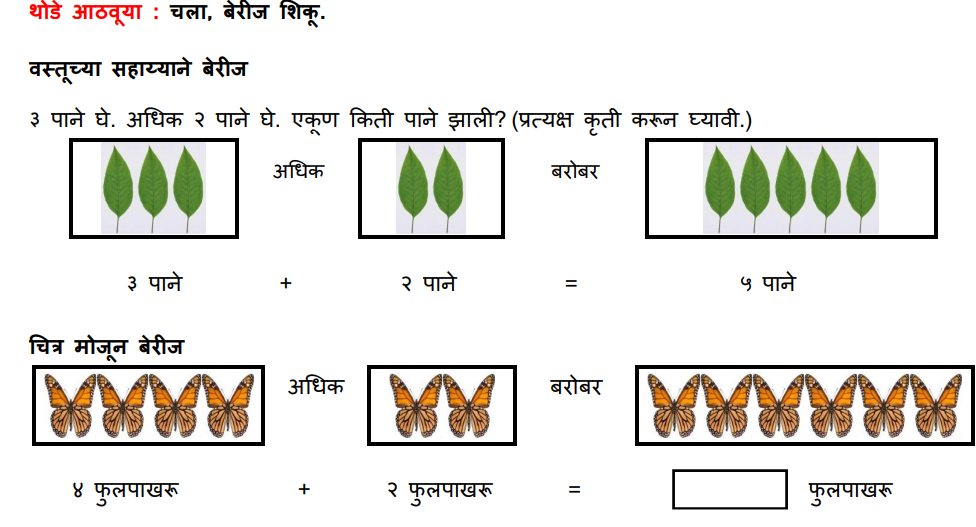 बेरीज म्हणजे : मिसळणे, जमा करणे, गोळा करणे, सगळे मिळून एकगठ्ठा एकत्र करणे.