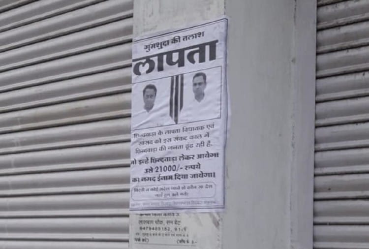 Posters Proclaiming Kamal Nath And His Son Nakul Nath Missing Seen In Chhindwara Madhya Pradesh – छिंदवाड़ा में कमलनाथ-नकुलनाथ के लापता होने के पोस्टर, खबर देने वाले को 21 हजार का इनाम