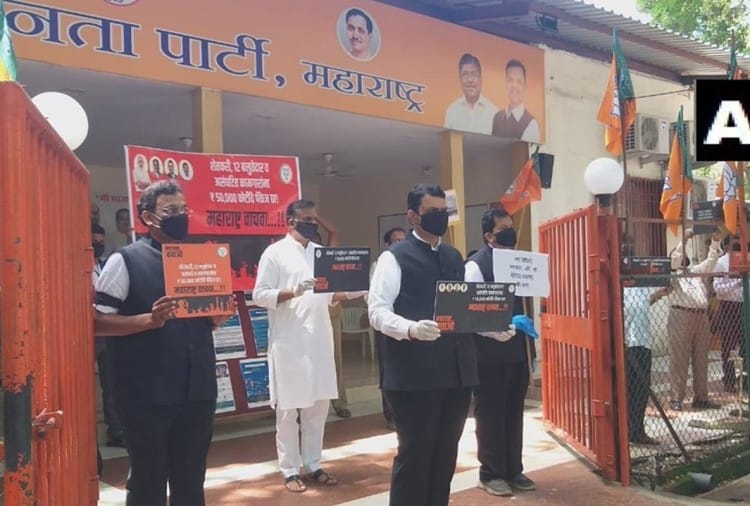 Devendra Fadnavis & Other Party Leaders Stage Protest, Demand State Govt To Announce Package – भाजपा ने शुरू किया ‘महाराष्ट्र बचाओ आंदोलन’, फडणवीस सहित कई नेताओं ने किया प्रदर्शन